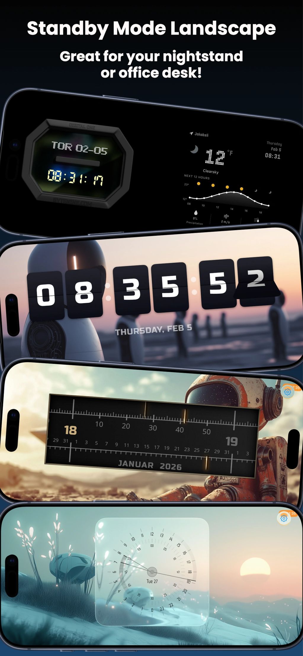 New and old clocks with weather support. Advanced weather with 6 hour forecast inline in clock now available.